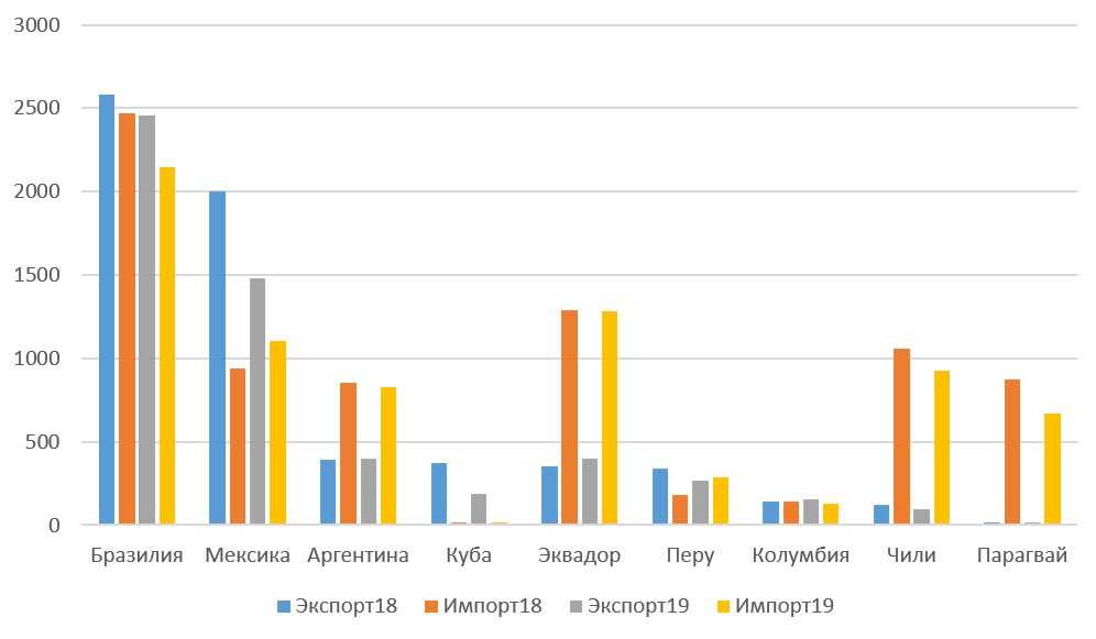 Основными странами Латинской Америки, из которых Россия импортирует товары, выступают: