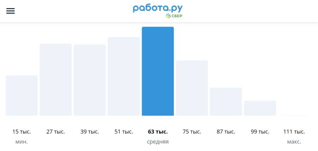 Джуны могут рассчитывать на зарплату от 25 тыс. рублей, по данным hh.ru. Средняя зарплата — 63 тыс. рублей, показывают данные с портала Работа.ру: