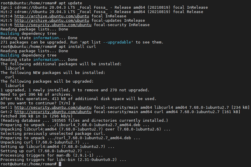 Если у вас абсолютно новая установка Ubuntu, то предварительно необходимо установить curl: