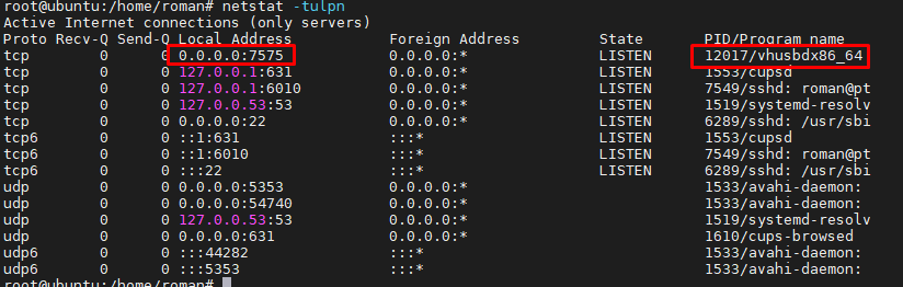 Серсив запущен и готов принимать клиентские подключения. Клиентский трафик прослушивается на порту TCP/7575: