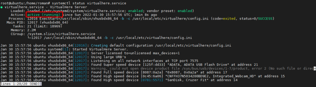 Теперь мы видим все подключенные к серверу USB устройства и можем примонтировать одно из них: