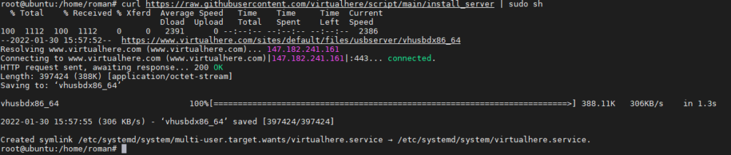При наличии на сервере прямого выхода в Интернет установка производится в одну команду:
