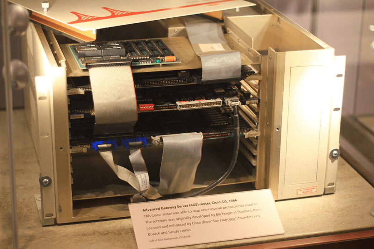 - 1986: выпуск первого в мире многопротокольного маршрутизатора.