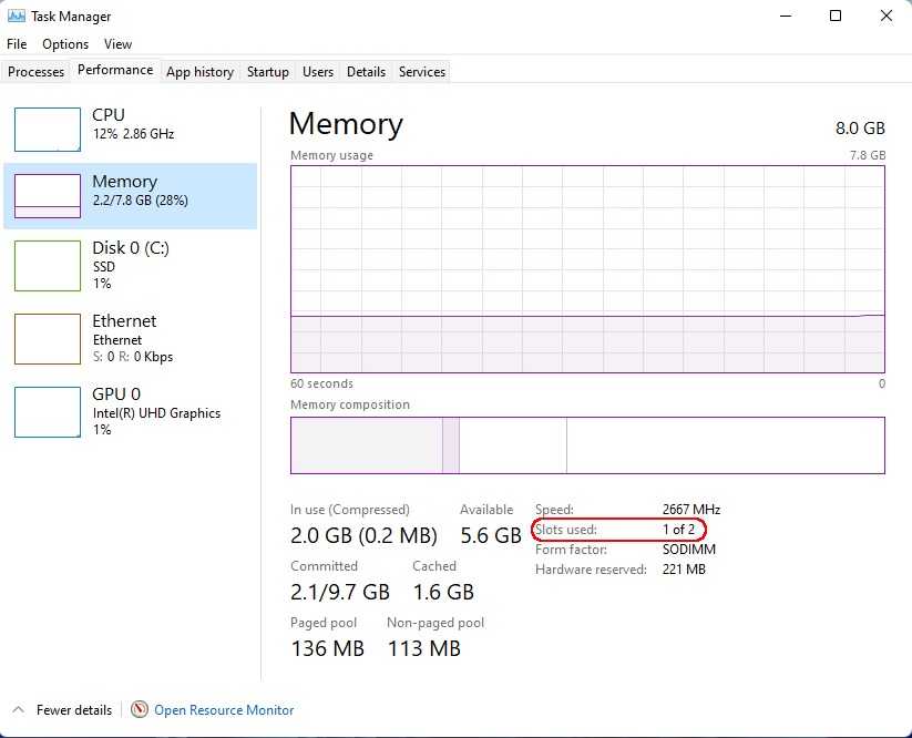 Модель для обзора включала M.2 2280 SATA SSD емкостью 256 ГБ в комплекте с установленной Windows 11 Pro и один накопитель DDR4 2666 МГц объемом 8 ГБ, а также возможность добавления 2,5-дюймового диска SATA в крышку, которая подключается к материнской плате через короткий ZIF-кабель: