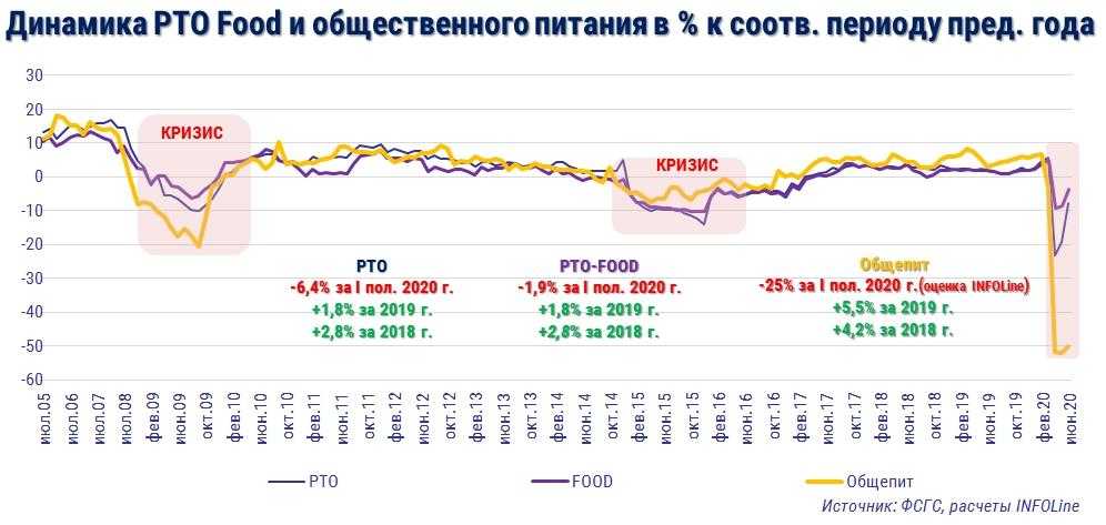 По подсчетам специалистов, закрылось более 50 % всех ресторанов, кафе и баров. Многие крупные сети мест общественного питания перешли на способ удаленной доставки еды (до 40 % от общего оборота).
