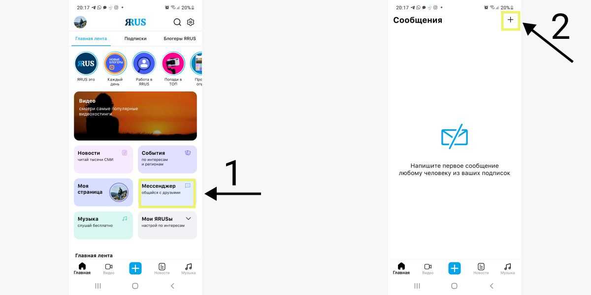 Чтобы отправить кому-нибудь сообщение, нажмите «Мессенджер», а затем на плюсик в верхнем правом углу.