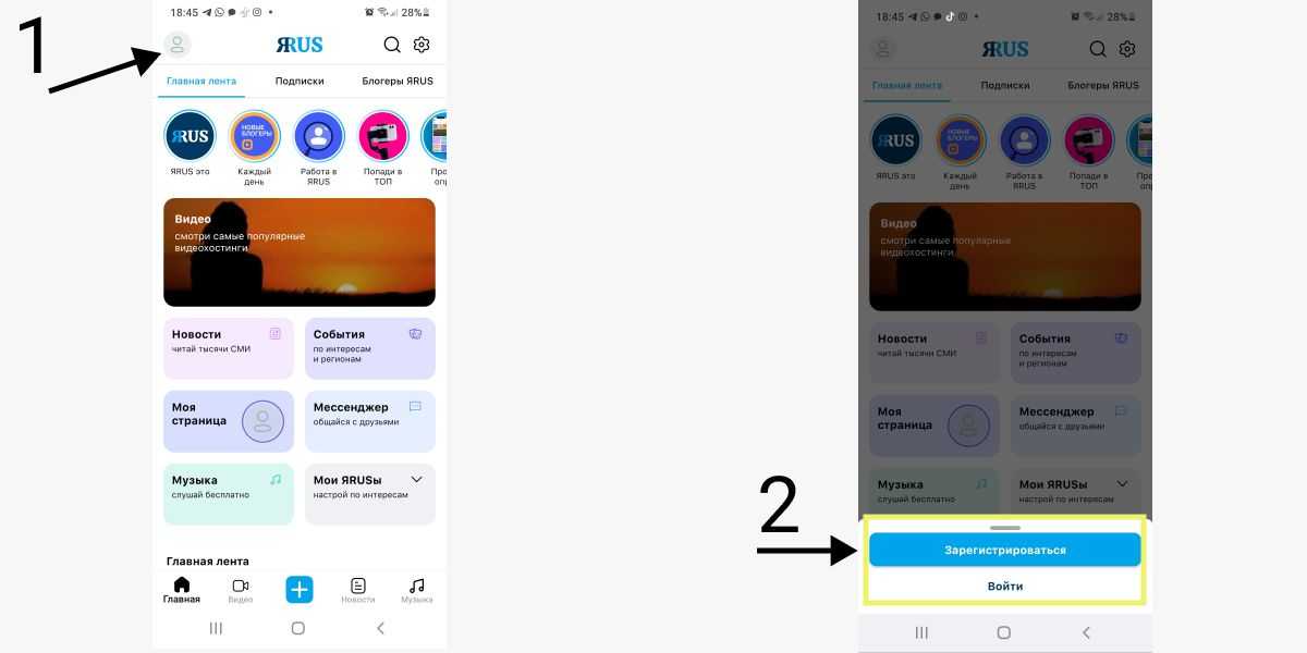 Для этого нажмите на иконку в верхнем левом углу, а затем во всплывшем окне – «Зарегистрироваться».
