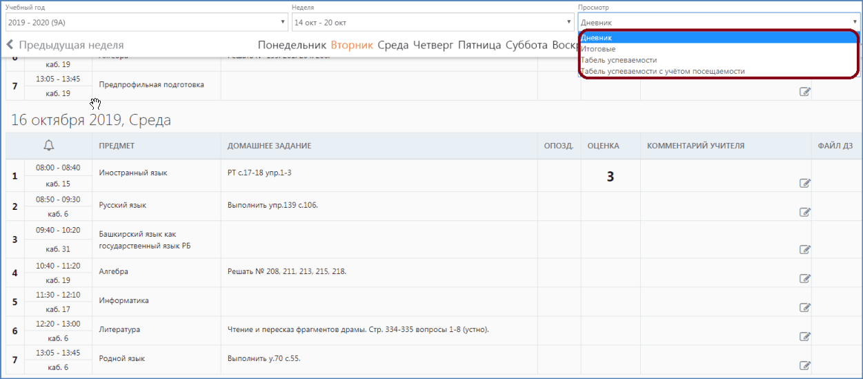 - Изучите записи в электронном дневнике Республики Башкортостан.