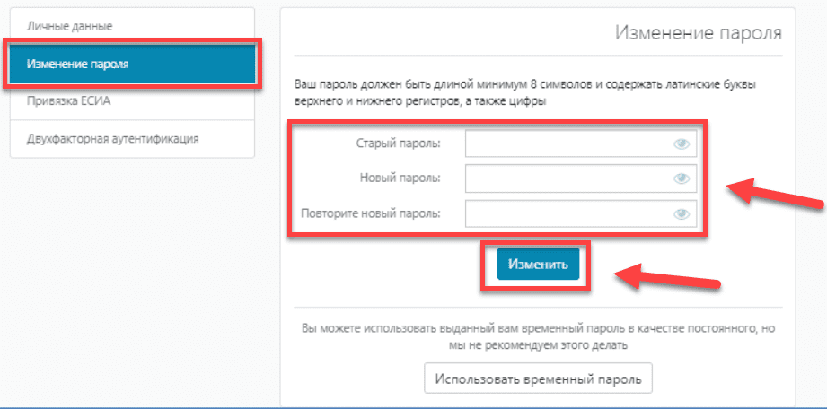- На главной странице https://elschool.ru/Logon/Index ввести пароль. Это данные только для первого входа, затем его нужно поменять во вкладке «Личные данные». Требования стандартные – минимум 8 латинских больших и маленьких букв, цифры, знаки препинания.