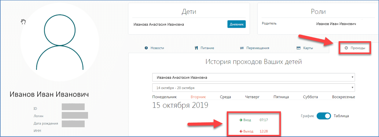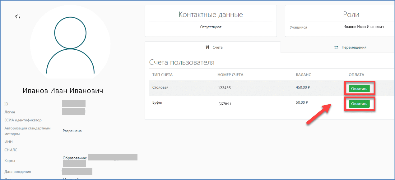 Родители получают доступ к оплате транспортных услуг и питания, контролю успеваемости и посещений ребенка. Ученики могут просматривать свои оценки и домашние задания в электронном дневнике. Учителя ведут учет успеваемости, ставят оценки, готовят отчеты по формам промежуточного и итогового контроля знаний.