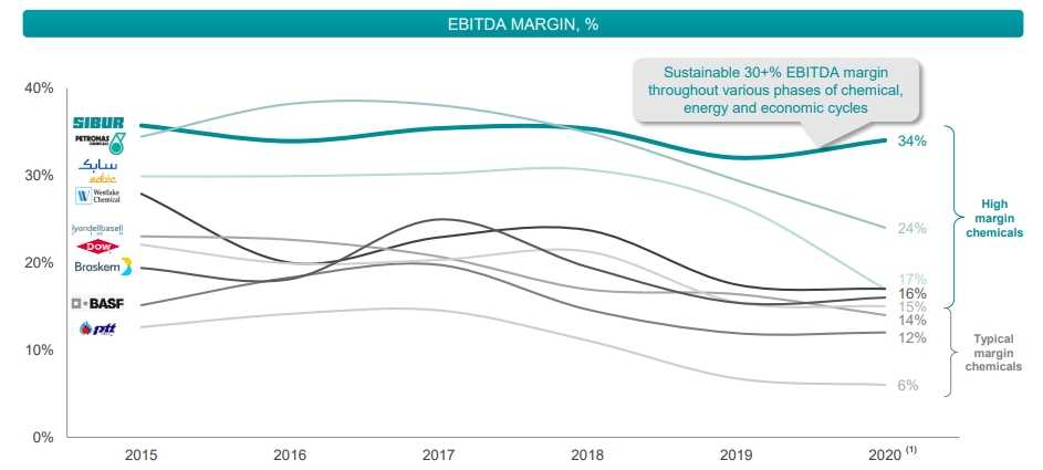 Несмотря на неудачный для мировой экономики 2020 год, компания, в отличие от своих зарубежных аналогов, смогла сохранить маржинальность EBITDA на среднем уровне и даже увеличить её на 2%.