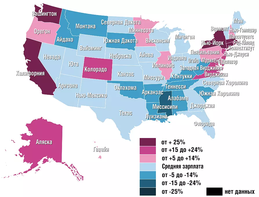 | Штат | Средняя зарплата по региону (брутто) | Средняя по региону (нетто) | Нетто — в российской валюте (по курсу на 17.07.2021) |