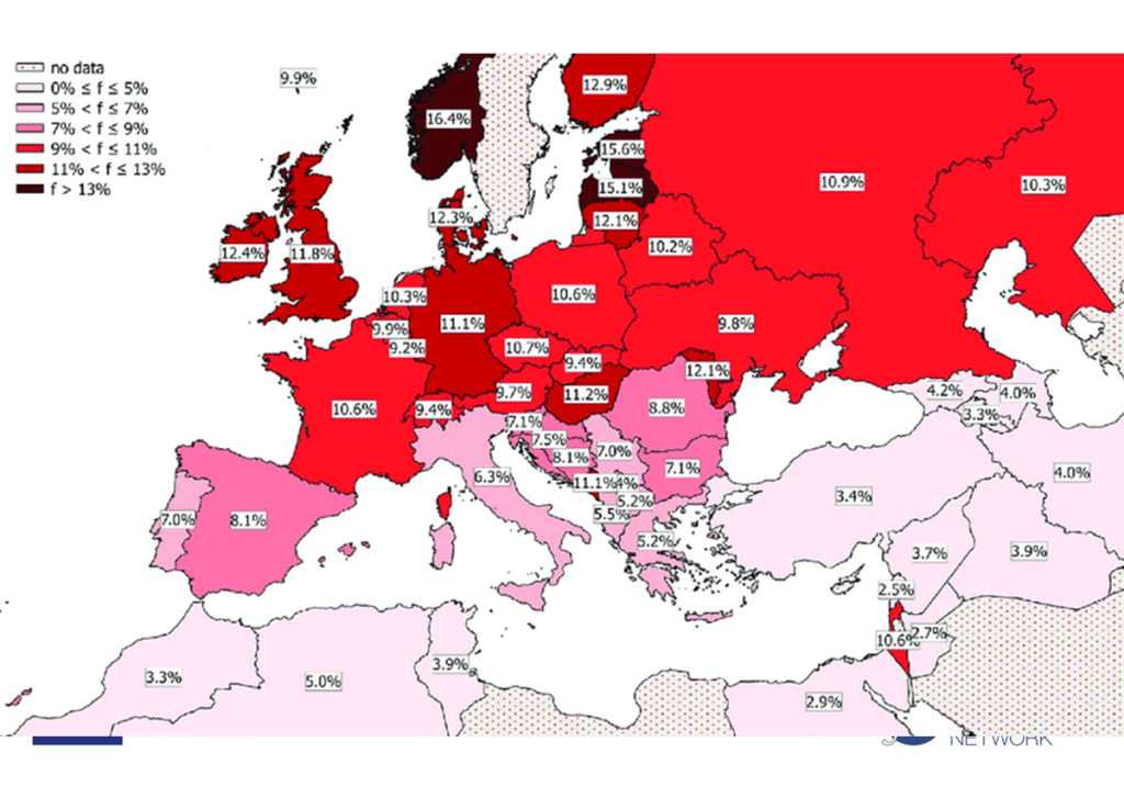Распределение частоты мутации CCR5-del32. «Красный» Израиль — это статистическое искажение, связанное с переездом евреев-ашкеназов из Германии, Польши и России в ХХ веке. Источник