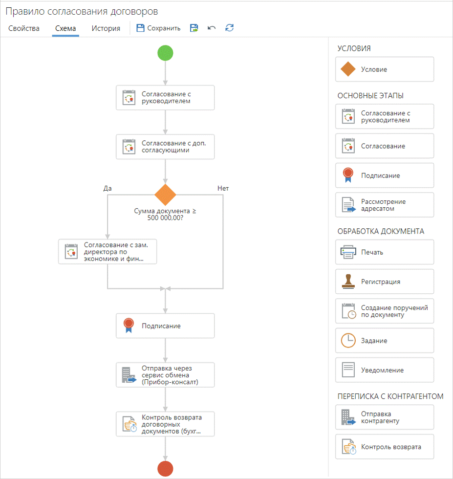 Интеллектуальная система управления цифровыми процессами и документами Directum RX уже в базовой поставке предоставляет возможности управления бизнес-процессами. Схема взаимодействия, как конструктор, собирается в графическом редакторе из отдельных блоков. Проектирование новой схемы взаимодействия с помощью инструментов моделирования позволяет схематично представить все этапы и предусмотреть возможные «узкие места».