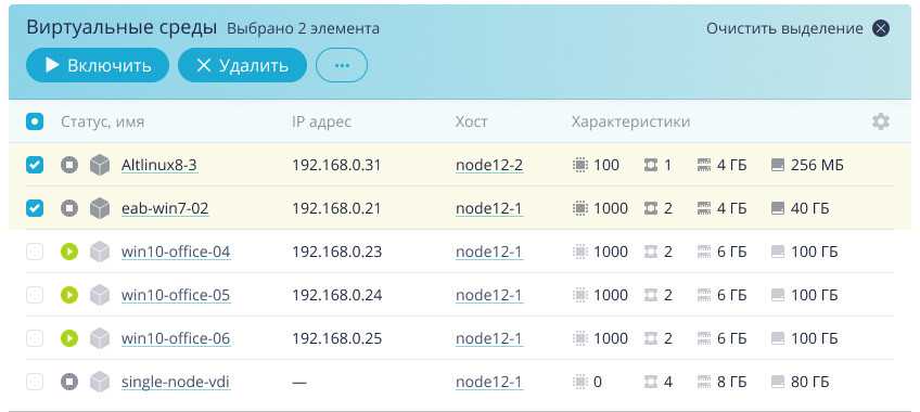 Отдельного внимания заслуживает интерфейс VDI-решения. Он понятен и удобен в использовании, а рутинные действия администраторов автоматизированы по максимуму. Действия из графической консоли можно производить сразу для группы виртуальных машин.