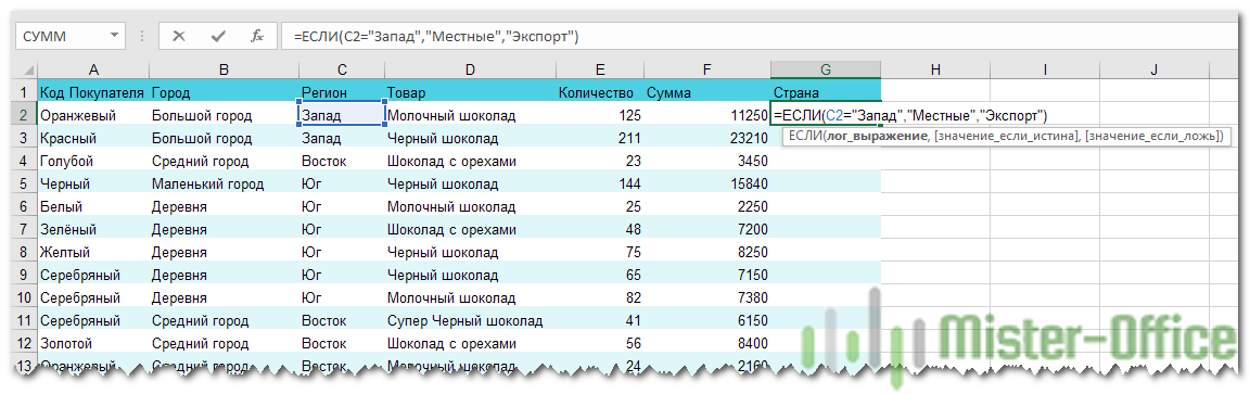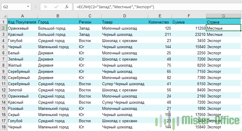Второй аргумент – это значение, которое примет ячейка G2, если записанное нами условие будет выполнено. Это будет слово “Местные”.