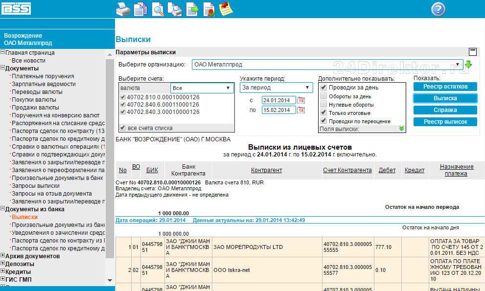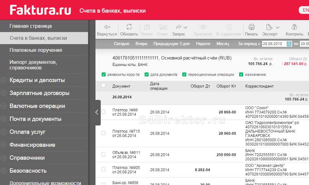 - Контролировать баланс на всех действующих расчетных счетах в банке.