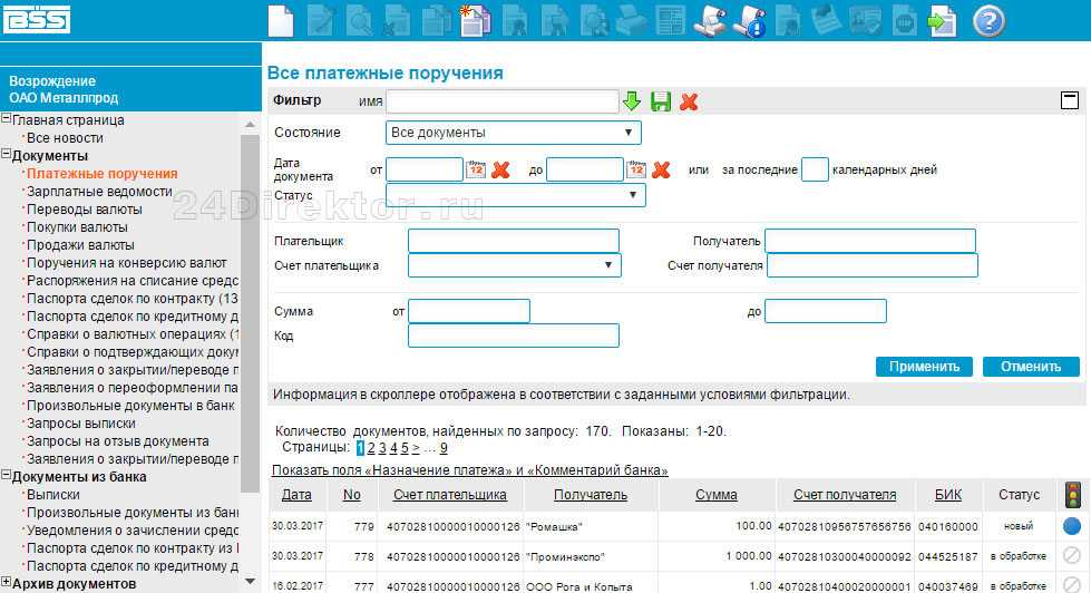 Второй вариант функционирует на платформе «ДБО BS-Client» от компании «BSS». Банк позиционирует его под названием «Интернет-Клиент» БСС. Его отличительные особенности: