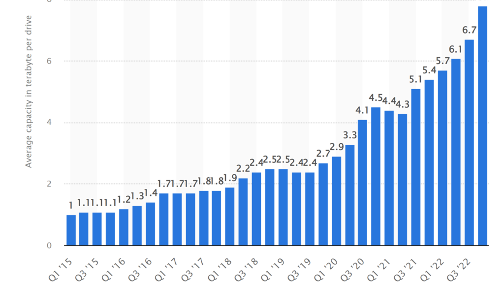 Средняя емкость HDD с 2015 по 2022 год Скриншот: statista.com
