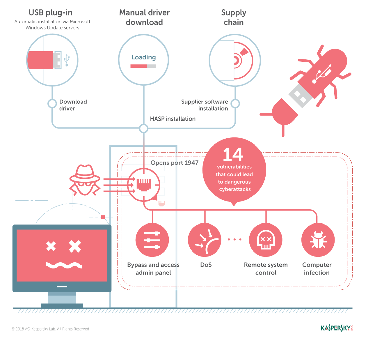 Во время проведения различных тестов на проникновение эксперты Kaspersky Lab ICS CERT неоднократно замечали присутствие одного и того же сервиса на компьютерах заказчиков, у которых использовались программные и аппаратные решения различных промышленных вендоров. На этот сервис не обращали внимания до тех пор, пока не нашли в нем уязвимость. Как выяснилось, это был сервис hasplms.exe, который относится к программно-аппаратному комплексу SafeNet Sentinel компании Gemalto. Это решение отвечает за контроль лицензий ПО, используемого заказчиками, и является очень распространенным во многих АСУ ТП и IT системах.
