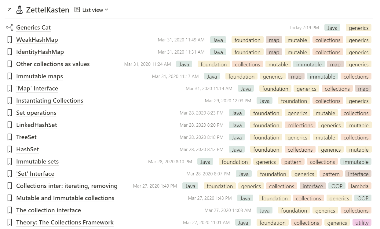 Но тематическая организация, с помощью папок или тегов, со временем приводит к проблемам. Под некоторыми тегами может скопиться очень много заметок и в них будет сложно найти нужную. А если добавлять новые темы, то их может стать так много, что придётся каждый раз ломать голову над тем, к какой теме стоит отнести новую заметку.