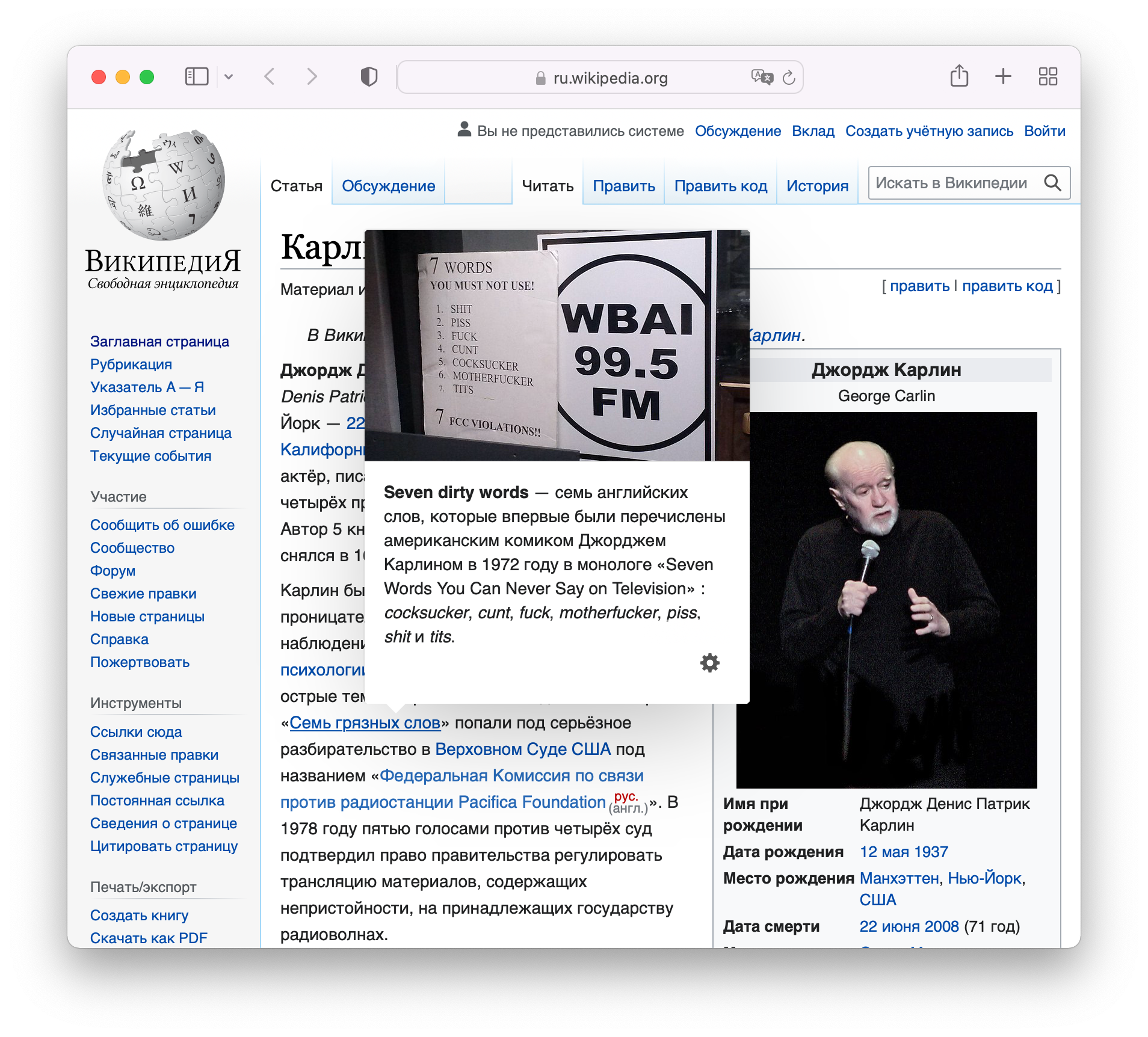 Джордж Карлин вёл картотеку шуток на разные темы