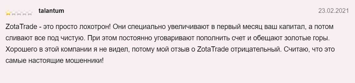 Отзывы о Zotatrade: