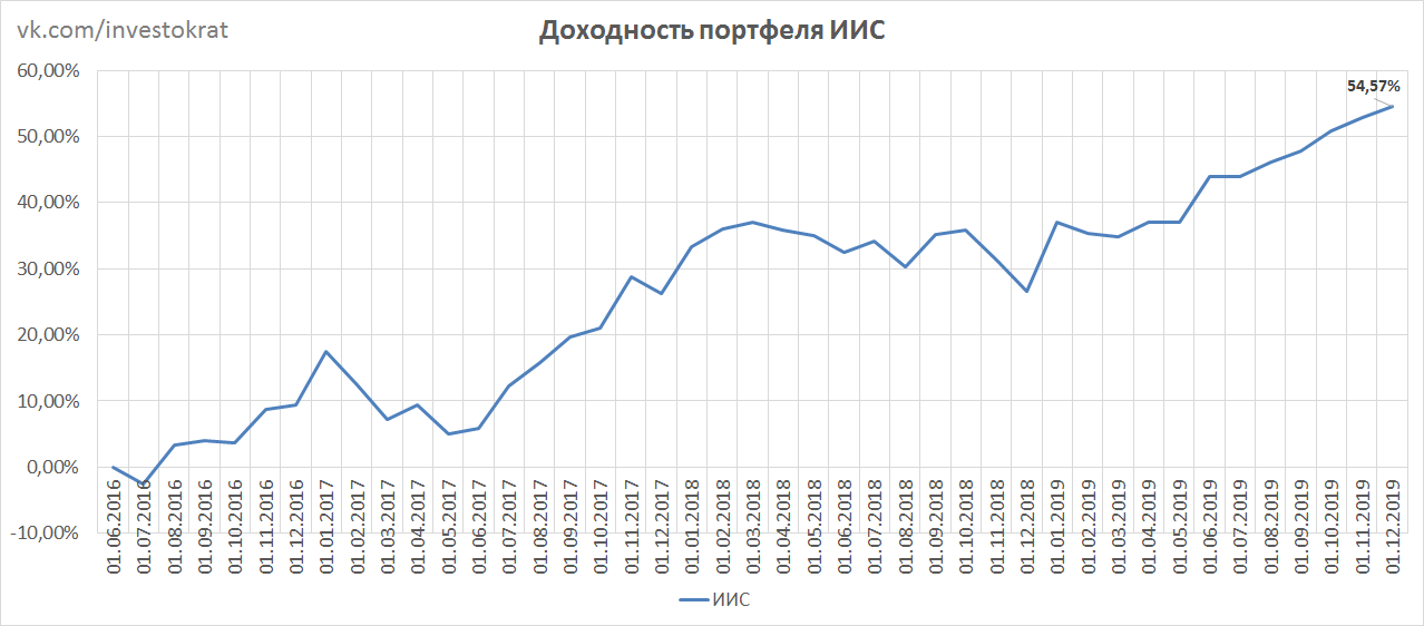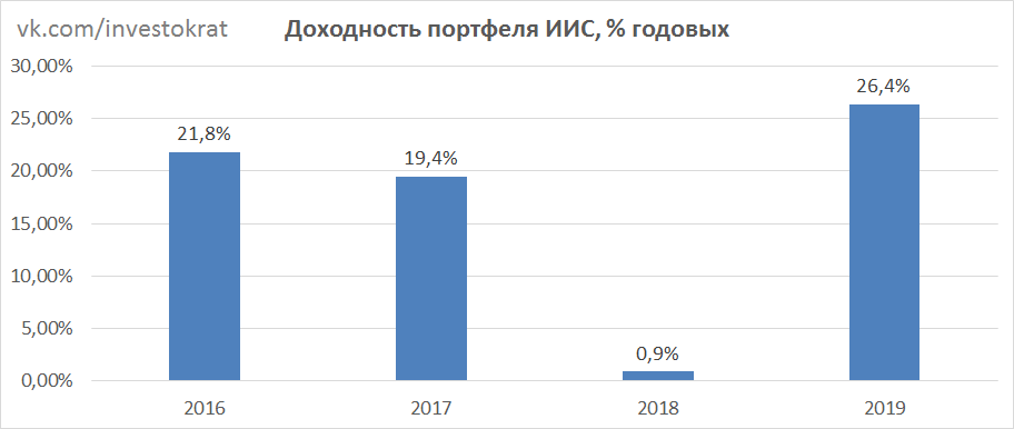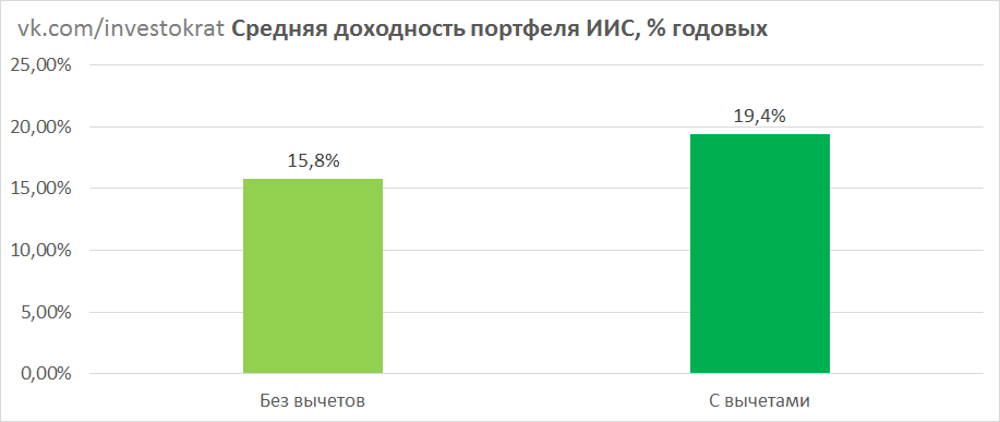 Если посмотреть на суммарную доходность по счету с момента открытия ИИС, она следующая: