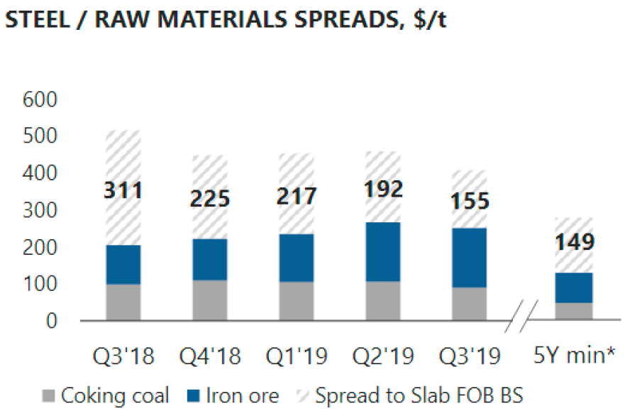 Из презентации НЛМК видно, как снижаются доходы у сталеваров, цены на сталь падают, цены на уголь держатся, цены на руду растут, в 3 квартале 2019 года по отношению к 3 кварталу 2018 года падение EBITDA на 36%. Дивиденды начинают платить в долг, но долго так длиться не сможет, за снижением дивидендов будут снижаться и цены на акции, пока спрос на сталь вновь не восстановится. Поэтому я жду более интересных цен на акции металлургов в 2020 году и постепенно набираю позицию.