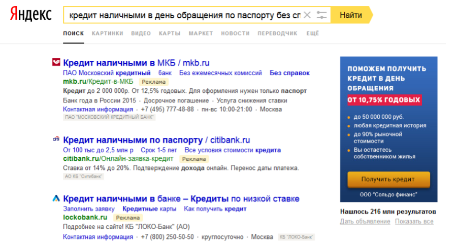 Когда я навскидку проанализировал рекламу по одному из запросов, то у меня сложилось впечатление, что банки представляют своих клиентов как людей, мотивированных взять кредит именно в их банке, которых не нужно ни в чем убеждать, которым не нужно упрощать процесс конвертации из посетителя в лида.