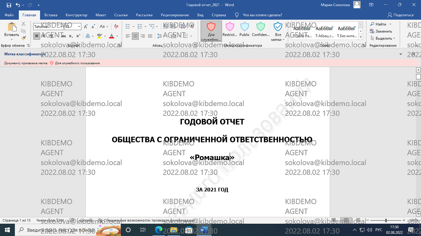 КИБ транслирует на экраны сотрудников водяные знаки: каждый содержит идентификатор ПК, учетную запись пользователя, текущие дату и время. Их видимость можно настроить, чтобы они были не видны и не мешали работе сотрудников. Если такое изображение найдется в сети, ИБ-специалист сможет загрузить его в КИБ и применить специальные фильтры. Проявившиеся водяные знаки помогут вычислить инсайдера.