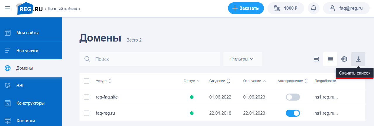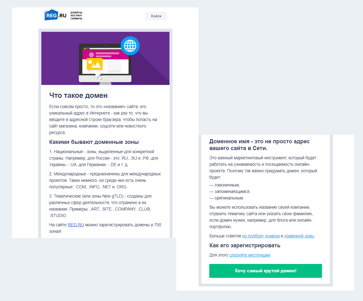 Тултипы (всплывающие подсказки). Это маленькие подсказки, которые обычно появляются при наведении курсора на определенный элемент (но могут быть и по клику). В этих подсказках дают краткое описание функционала, например, кнопки. Пример тултипа в личном кабинете REG.RU: