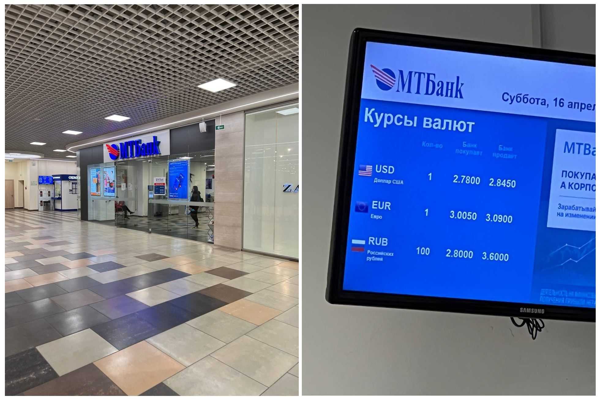 В выходные у МТБанка работают два отделения: ул. Петра Мстиславца, 11 (м. Восток) и пр-т Партизанский, 150а (м. Могилёвская). Оба работают с 10:00 до 18:00. Оба находятся в торговых центрах.