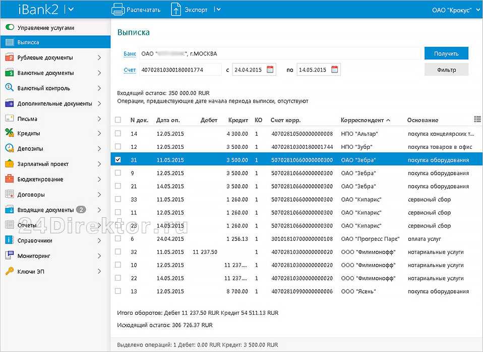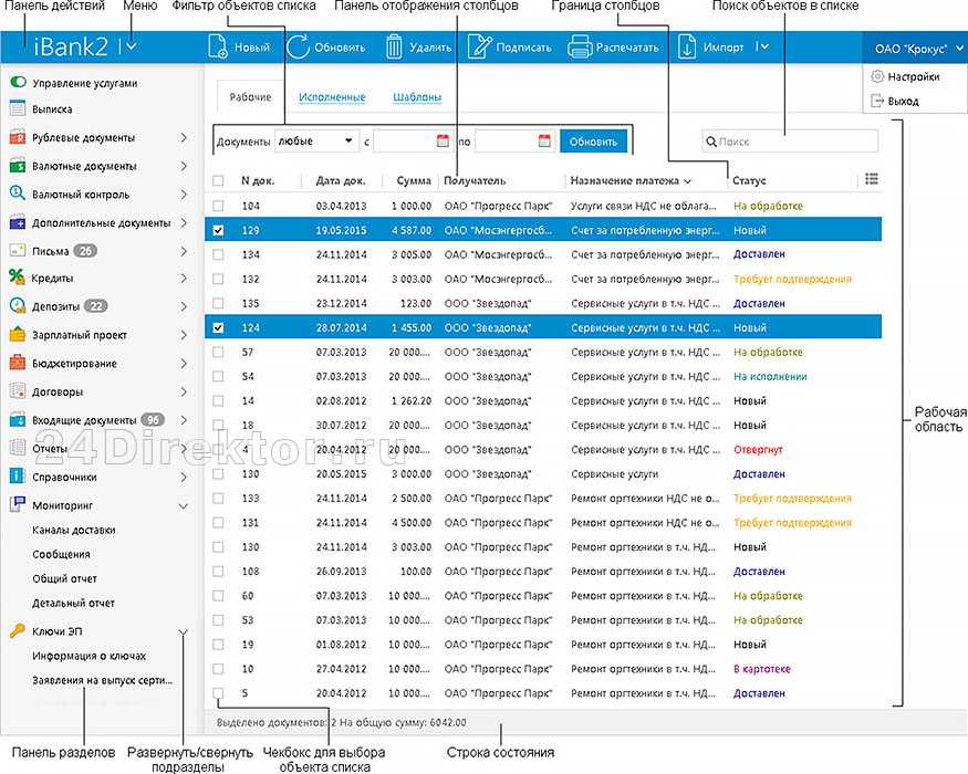 мониторинг состояния счетов, их статистики и всех проводимых транзакций, заказ выписки;