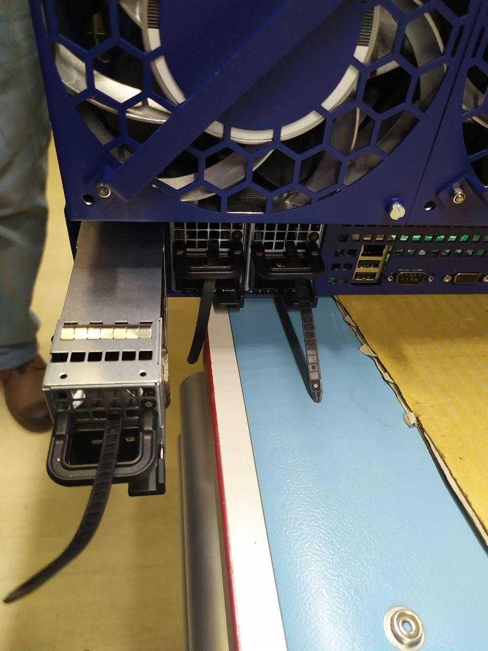 Таким образом, чтобы обеспечить электропитание платформы и одновременно организовать возможность замены блока питания в штатном режиме суммарная мощность активных блоков должна была быть 4 киловатта (на рынке, понятно, таких решений нет), поэтому их делали на заказ с запуском производственной линии для серийного производства (напомню, в планах тысячи таких серверов).
