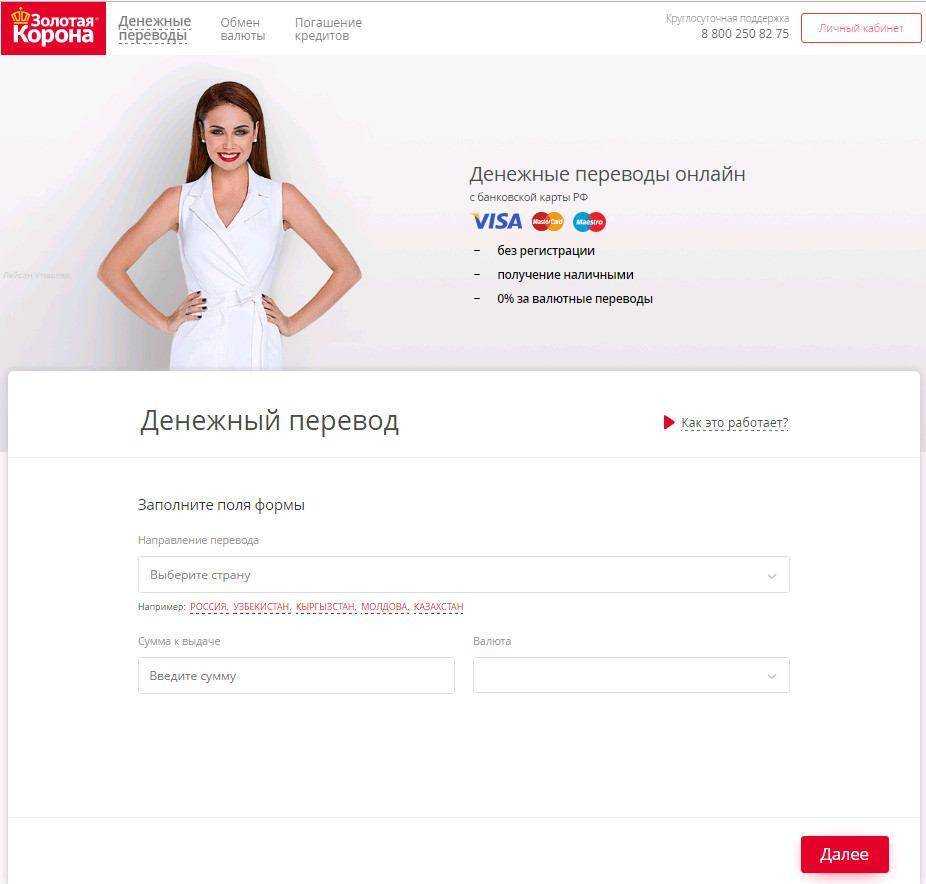 Рис.1 Онлайн перевод в Казахстан на сайте Золотая корона