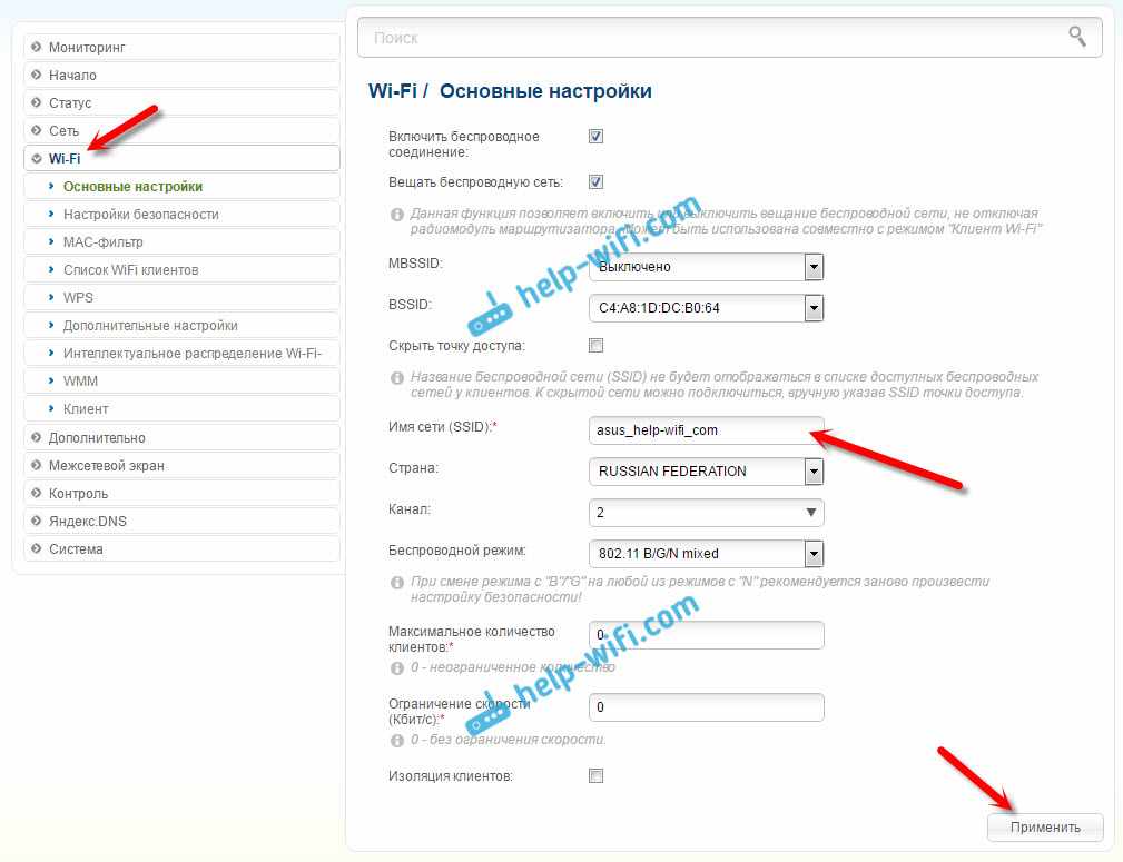 Для этого откройте вкладку ‘Wi-Fi’. В поле ‘Имя сети (SSID)’ нужно прописать название сети точно такое, как на роутере, Wi-Fi сеть которого вы хотите усилить, и к которому подключили D-LINK.