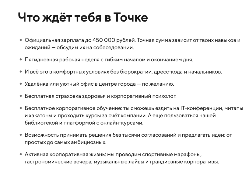 А на должности Python-разработчик в банке «Точка» можно сдвигать график и выбирать место работы