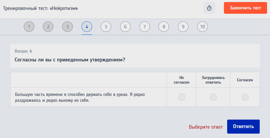 Онлайн-пример психологического теста: