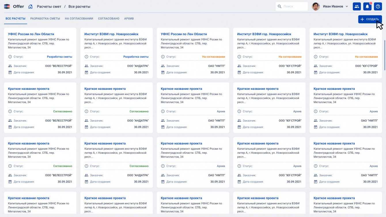 Оферта (Offer) — облачный сервис для предварительного расчета стоимости проекта, анализа физико-технических и финансовых показателей.