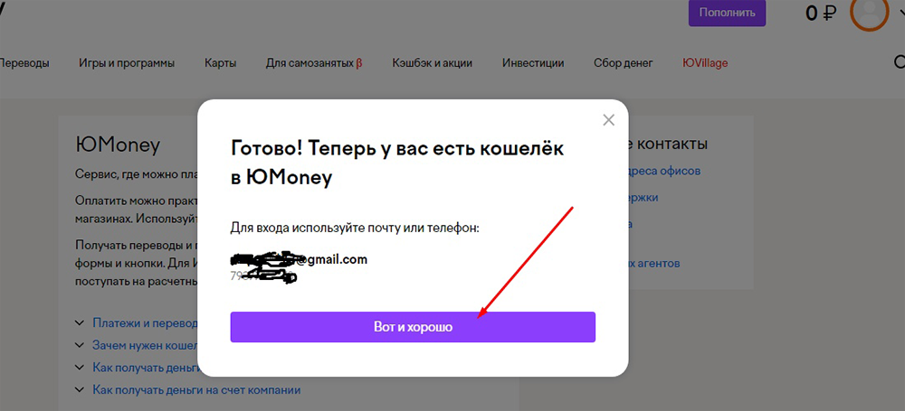 Поздравляю, вы создали электронный кошелёк Юmoney!
