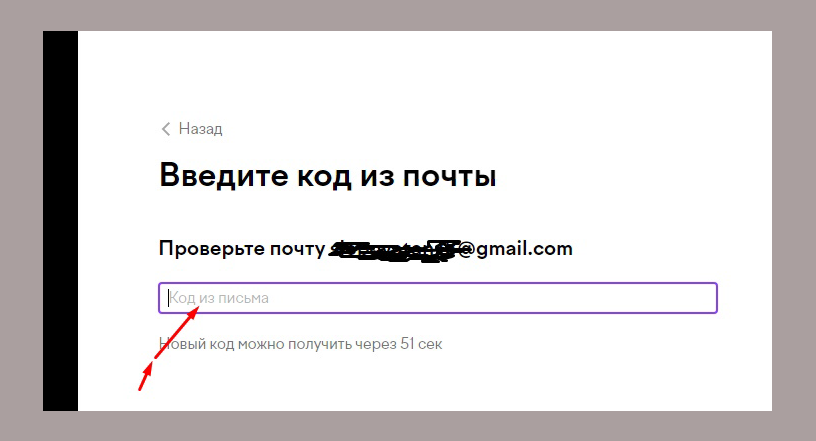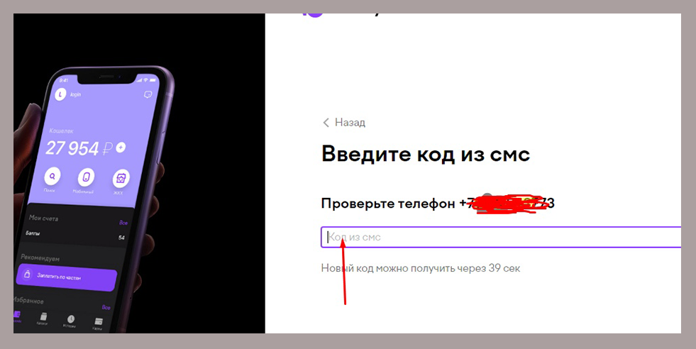 После ввода номера на мобильный телефон вам придёт сообщение с кодом. Введите его, как показано на скриншоте.