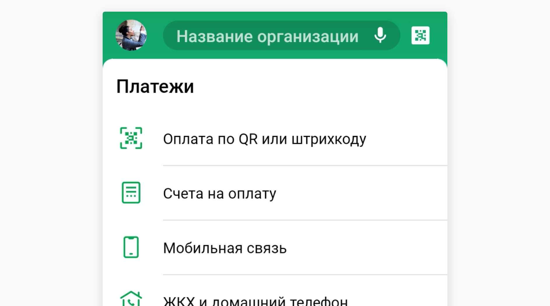 Шаг 1. Зайдите в раздел «Платежи» и выберите «Оплата по QR или штрихкоду».