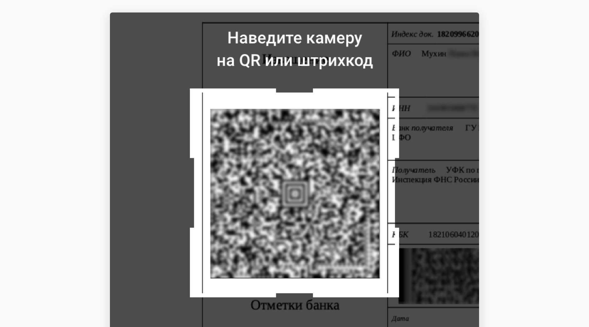 Шаг 2. Наведите сканер на QR-код вашей платежной квитанции.