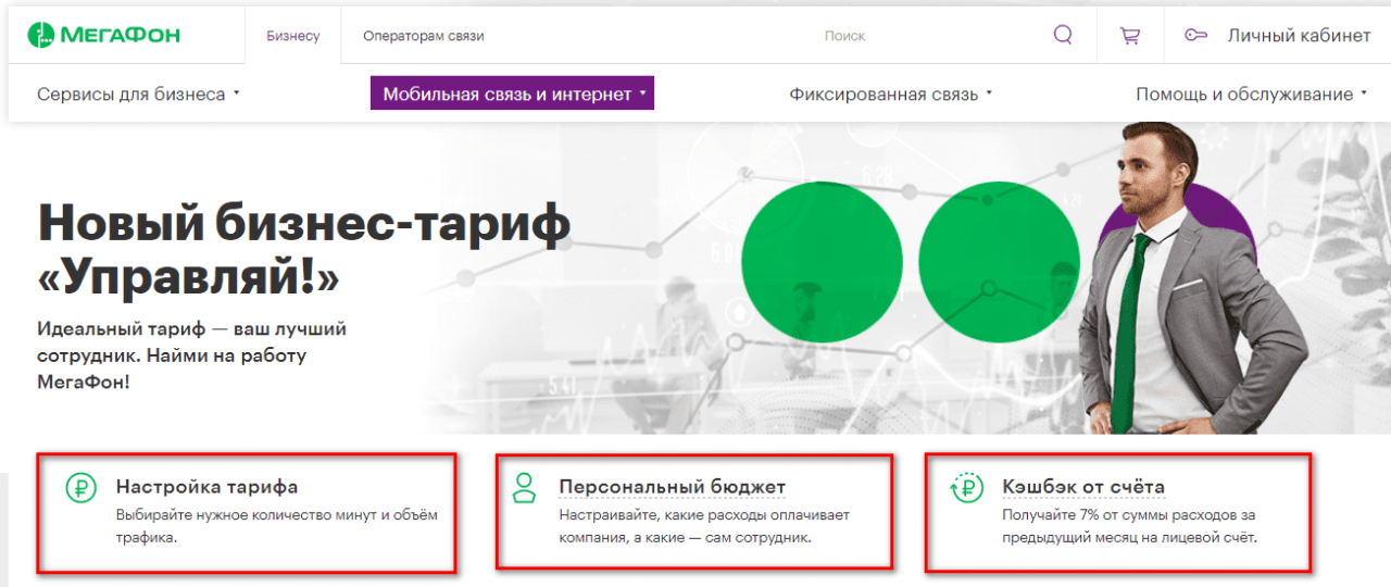 Для корпоративных абонентов «Мегафон» предлагает выгодную возможность воспользоваться кэшбэком, получая определенный процент от затрат на сотовую связь и Интернет и расходуя их по своему усмотрению.
