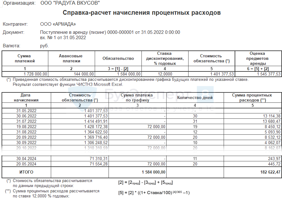 | 76.07.5 | 76.07.1 | 182 622,47 | Учет процентных расходов | ||||
