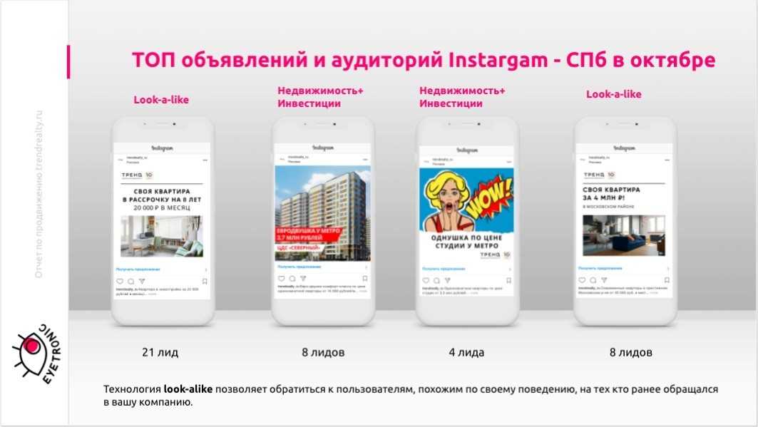 Кроме того, мы учитывали длительность цикла сделки в недвижимости и помимо ежемесячных готовили отчёты в разрезе более длительного периода. Такой подход позволял наглядно показывать динамику KPI, показывая клиенту, как ведётся работа над рекламными кампаниями.
