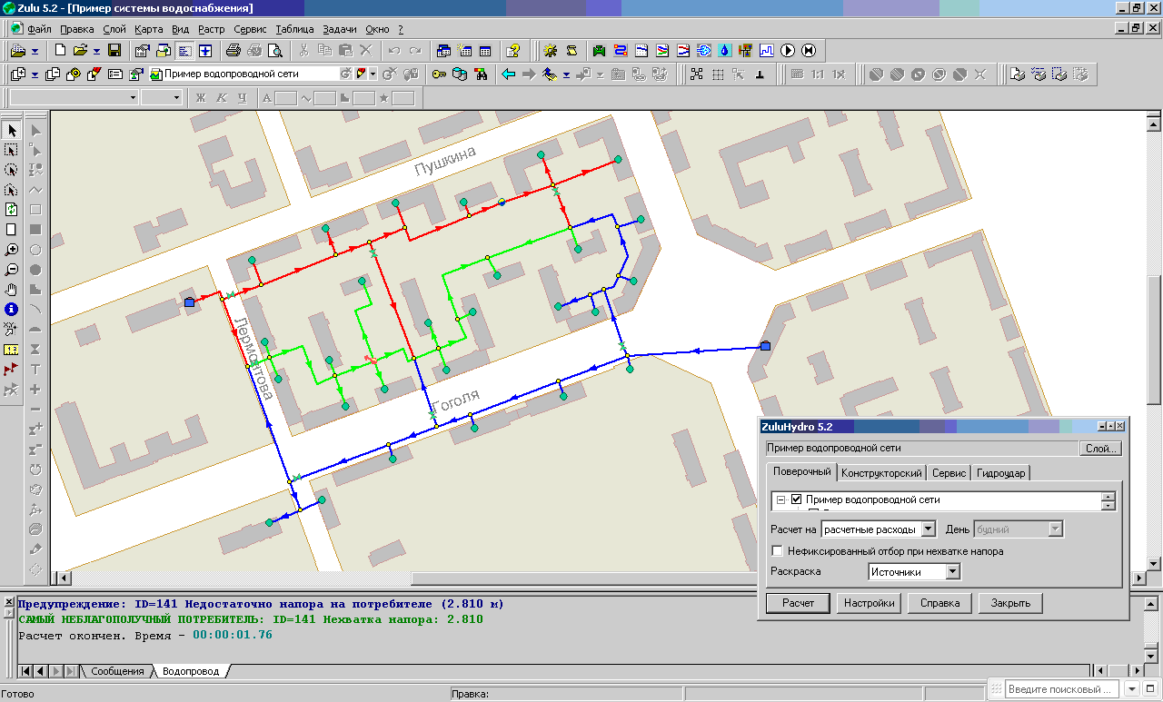 Для возможности автоматизации решения вышеперечисленных задач, необходимо, чтобы инженерная сеть была представлена в системе в виде топологически связанного расчетного графа, содержащего все ее элементы, так или иначе влияющие на физические процессы, имеющие место в данной сети.