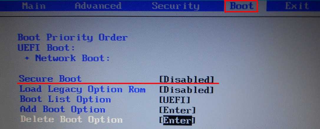 Перейти к желаемому взаимодействию с системой можно путем изменения опции Secure Boot, которая присутствует по умолчанию в BIOS.