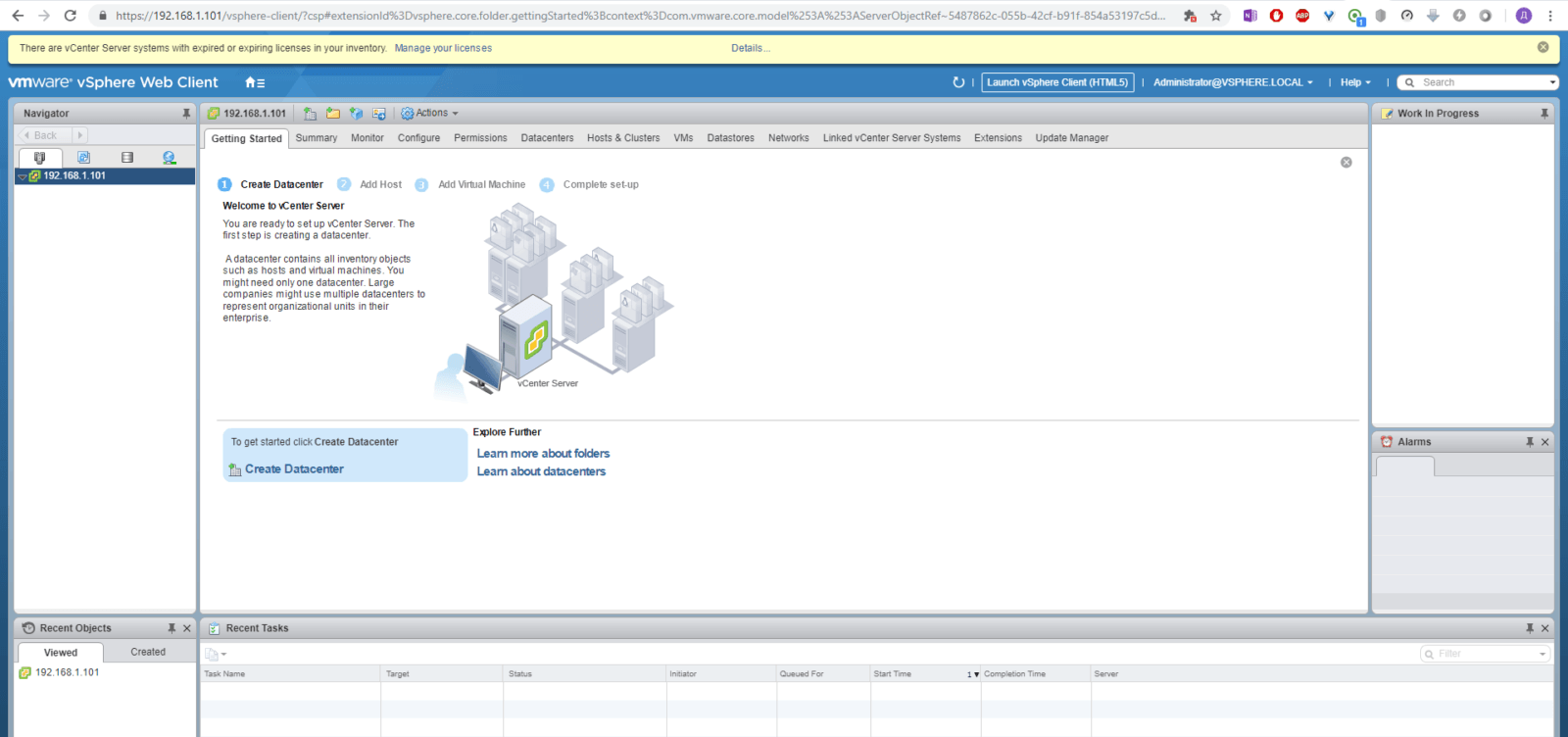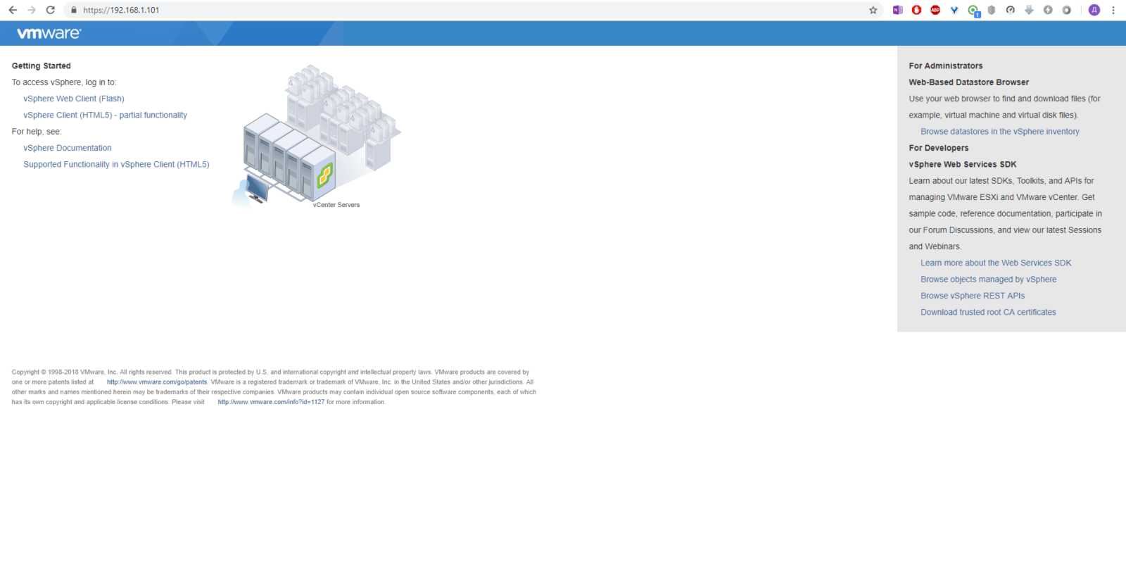 вы сможете попасть в интерфейс управления VCenter.